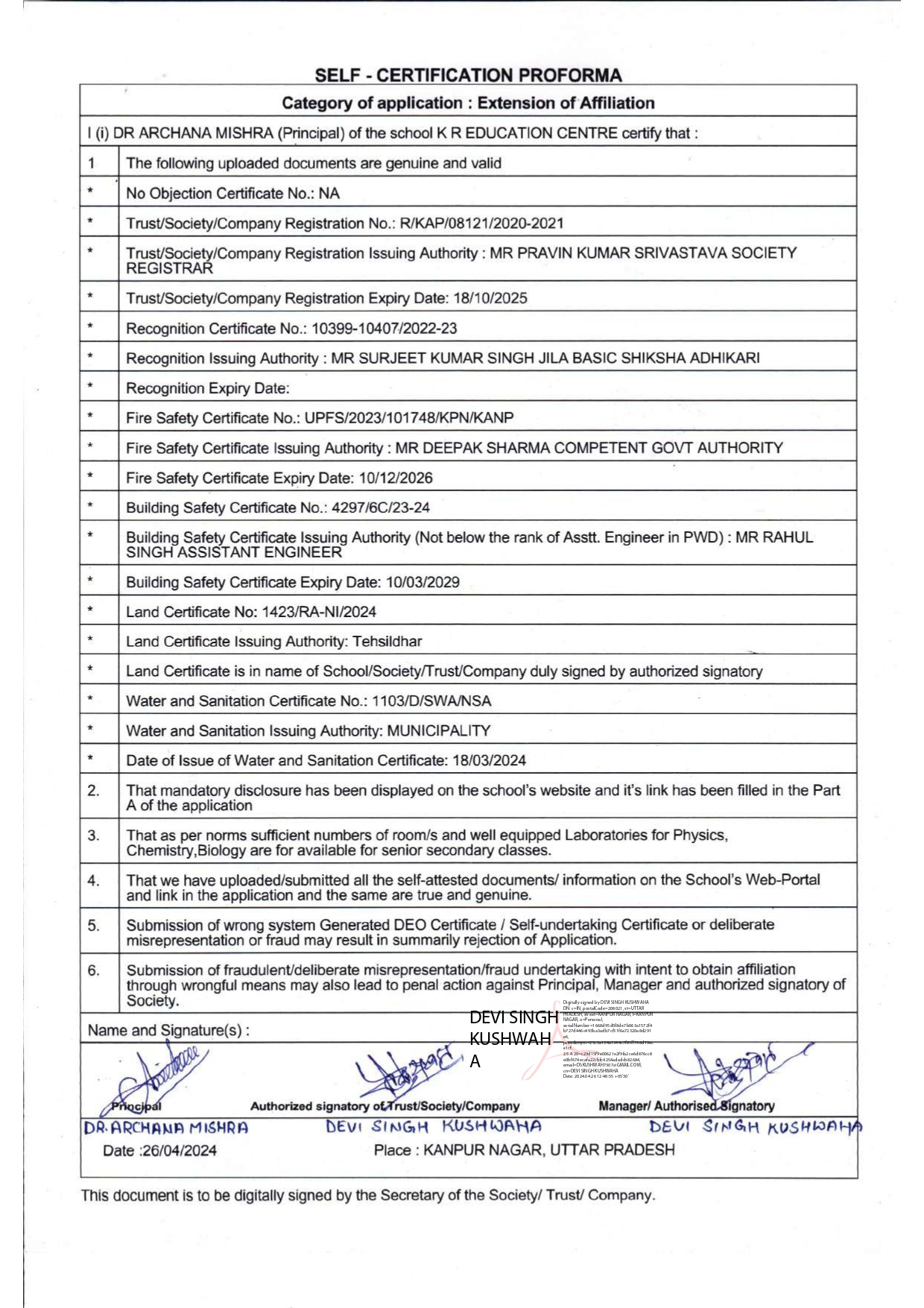 SELF CERTIFICATE