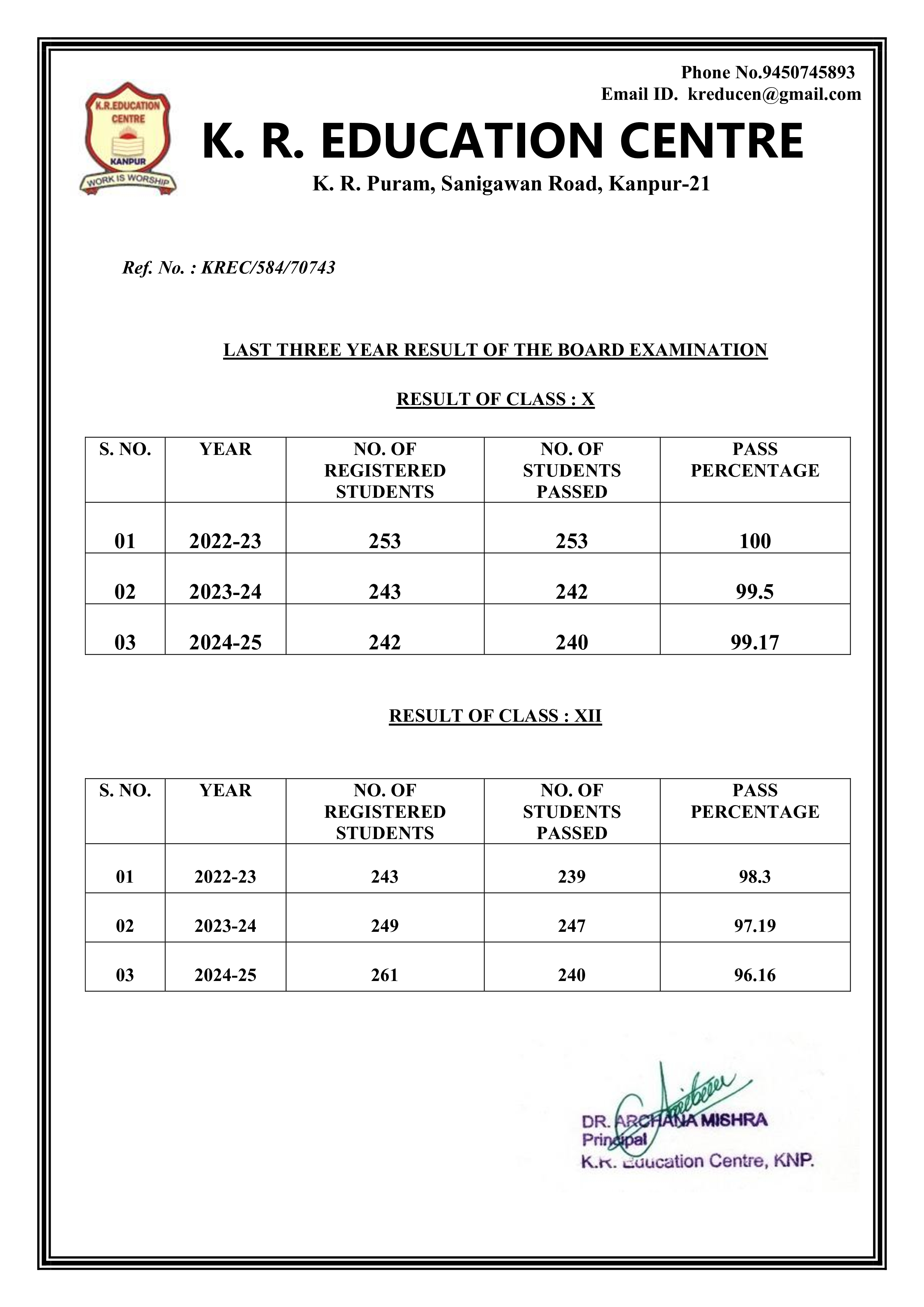 THREE YEAR RESULT