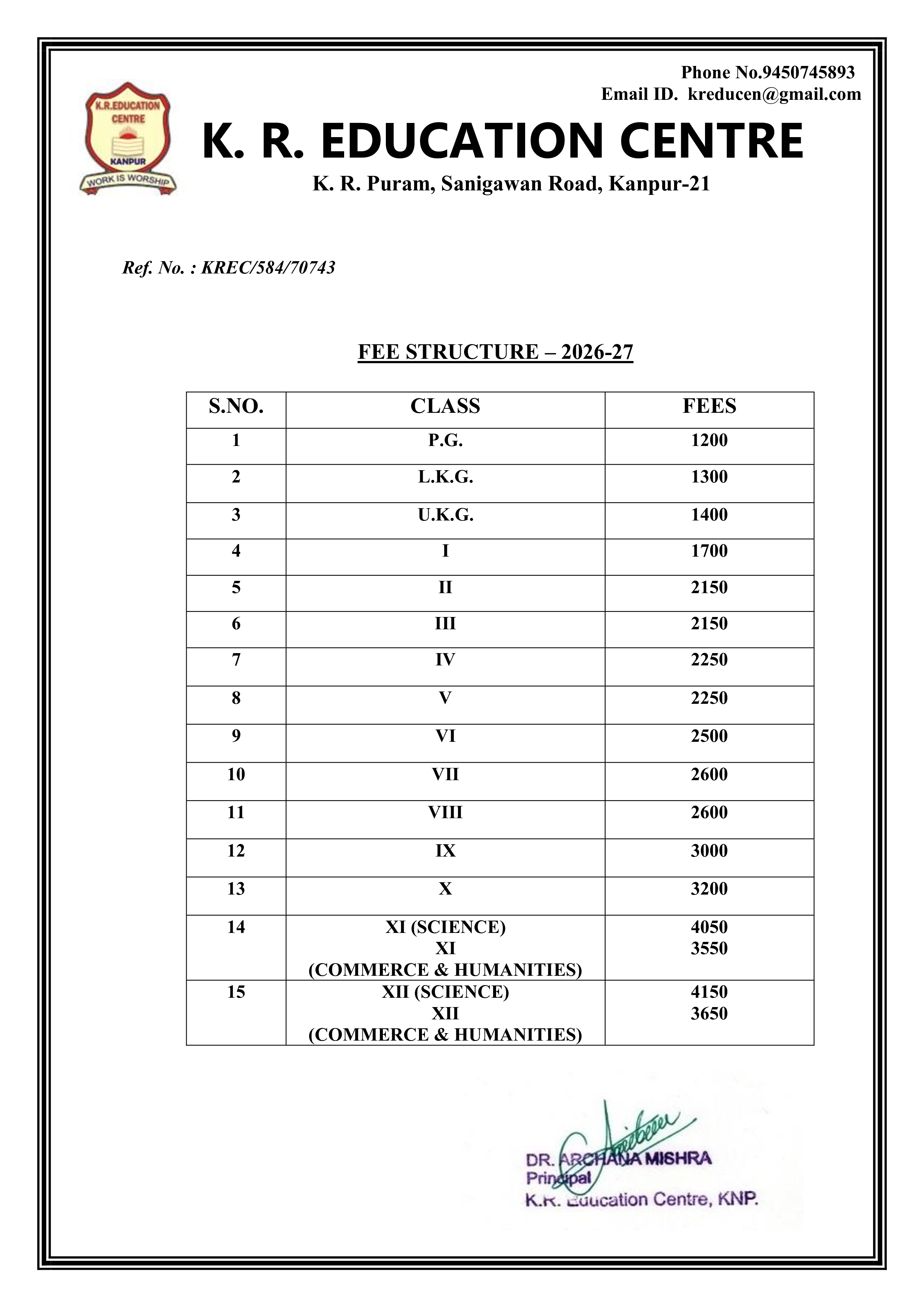 FEE STRUCTURE